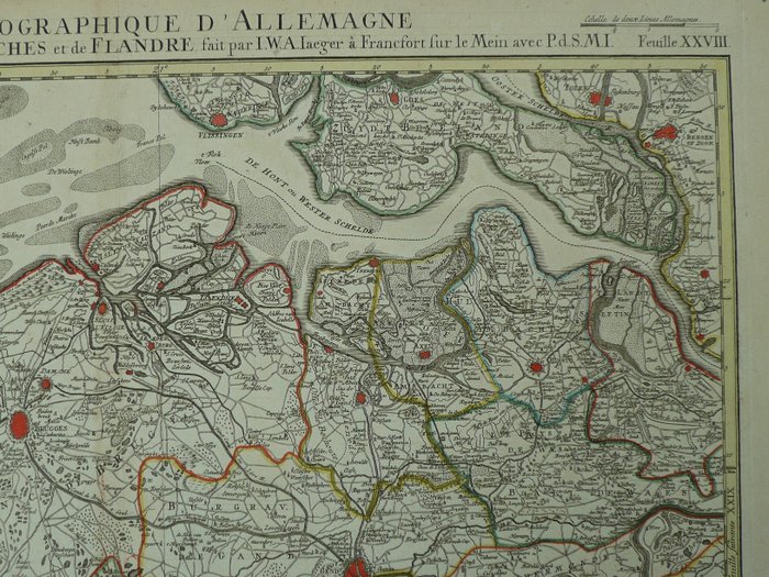 België, Vlaanderen, Zeeland, Brugge, Gent, Sluis; J.W. Jaeger - Carte Topographique d'Allemagne contenant une partie de Pais Bas Autriches et de Flandre - 1781-1800