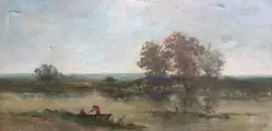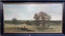 Beautiful impressionistic 19th. century French or Belgian oil painting on canvas. Unfortunately I am not able to decipher the signature. But maybe you can? It has a few major tears in the canvas and a few minor tears (more holes), so needs restoration. Also one restoration spot in the middle. Further original condition, not relined/doubled, so original canvas. Original black frame. Signed lower right and dated '76. (1876) . Shipping within Holland free.