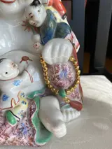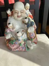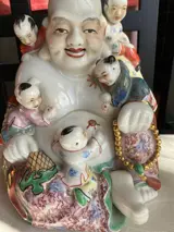 Grote Boeddha met kinderen. Zeer goede kwaliteit. Het schilderij is erg mooi en sommige delen zijn goudkleurig. Gemarkeerd.