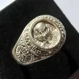 Boeddhistische ring van kracht en meditatie versierd met een eerbiedwaardige monnik.