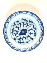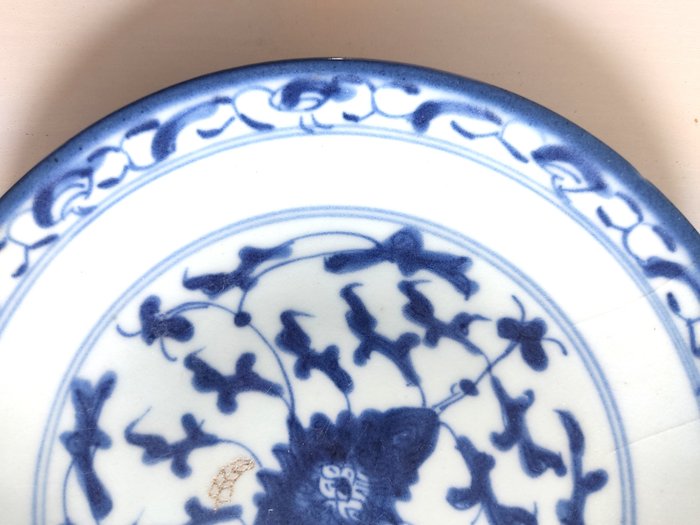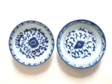 Mooie set van twee kleine Chinese porseleinen borden uit de 19e eeuw. Decor in onderglazuur blauw met gestileerde bloemen.