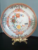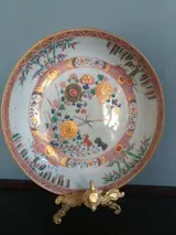 Conditie: Zeer goed. Geen chips, geen haarlijnen, geen restauratie. Vanwege de ouderdom wat slijtage van rood email op de paar delen van het centrale medaillon. Een kleine chip aan de voetrand. Verder is het bord in perfecte staat. Het verguldsel zit er nog op en heeft zijn oorspronkelijke glans en kleur.