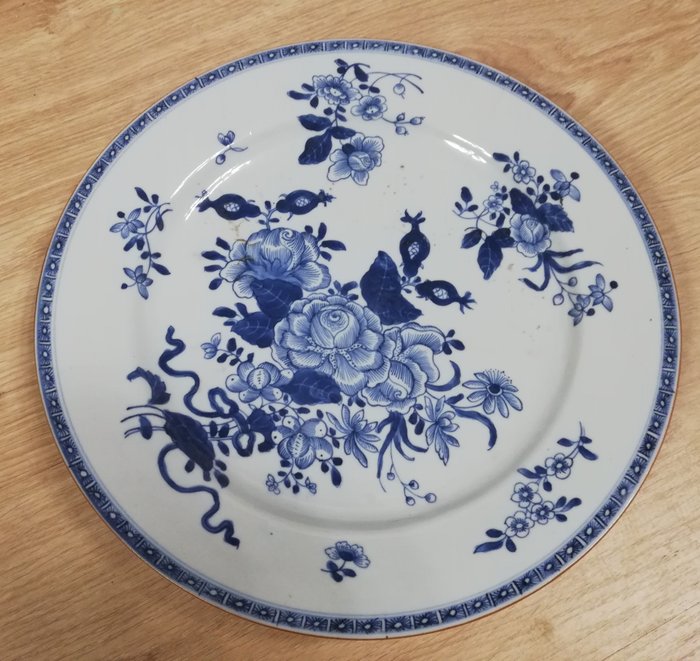 Prachtig Qinghua-porselein, met pioenrozen en bladmotieven prachtig beschilderd in onderglazuur blauw en wit.