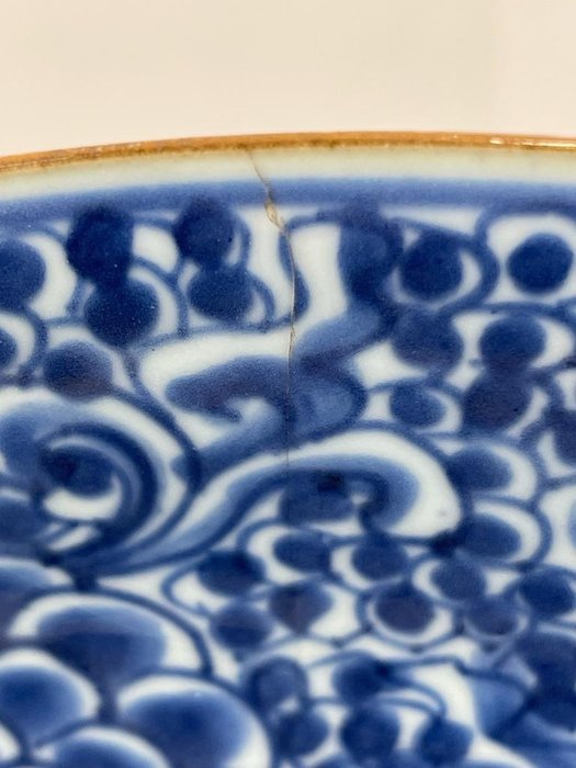 Blauw porseleinen bord met bloemmotieven toegeschreven aan de Quing-dynastie uit het Kangxi-tijdperk