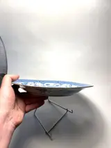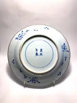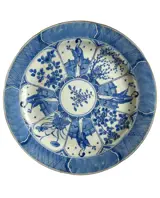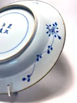Subliem Chinees bord/schaal met blauw wit decor, gesigneerd "brand with 4 characters: Kangxi"