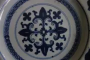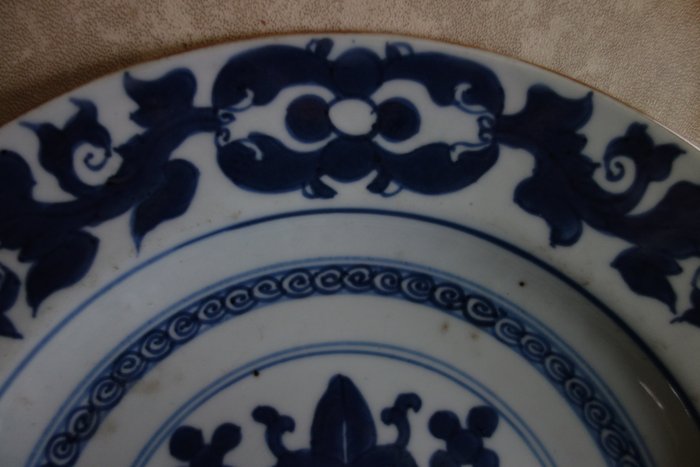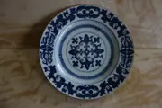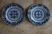 Zeer mooi en zeldzaam paar blauw-witte borden in Chinees porselein uit de Kangxi-periode (1662-1722) bestemd voor de Europese markt (Portugees of Spaans) - In het midden is de versiering van het "Florenced Cross" (kruis met takken afgewerkt in fleur-de-lys) omgeven door een cirkelvormige fries gevormd uit spiralen. Op de vleugel van het bord bevindt zich een versiering die bestaat uit dubbele vissen met schoppenkoppen - (misschien een religieus motief, het eerste symbool van christenen is de "vis"?) - en plantmotieven, evenals andere ornamenten - De achterkant neemt de klassieke thema's van plantentakken op de omtrek over - Diameter: 22,5 cm - Hoogte: 1,5 cm - De pasta van het porselein is dun en het glazuur is van een zeer witte toon, licht celadon, zoals het hoort. ..