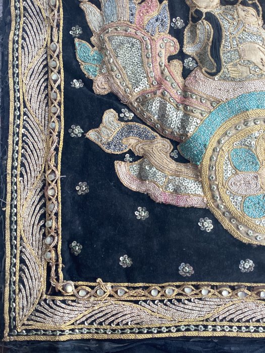 Materiaal: stof, canvas, parels, zijde, linnen en katoenen draden.