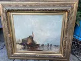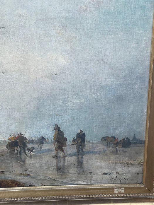 Het schilderij is in goede staat met lichte slijtage aan de lijst