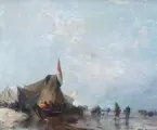 Carl Hilgers (1818-1890) - Fishing Scene with Tents on the beach