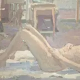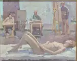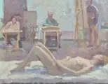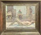 Olieverf op doek aangebracht op karton met afbeelding van het model naakt.