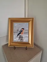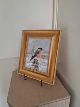 Schilderij heeft een nieuwe goudkleurige massief houten lijst .