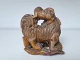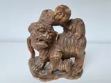 Uitstekend antiek Chinees spekstenen snijwerk van een foo leeuw, met een nest pups, 19e eeuw.