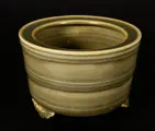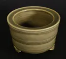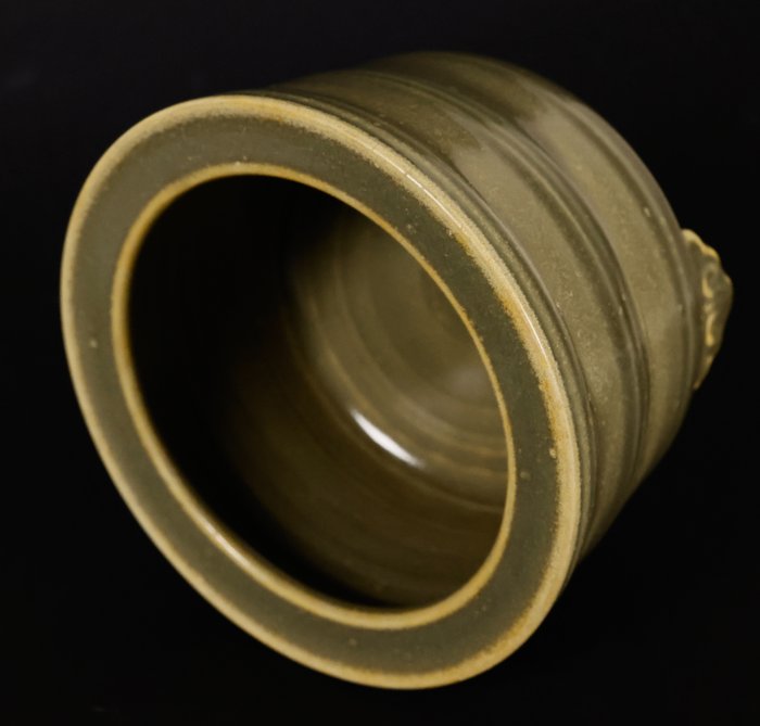 Chinees Longquan Kiln Tripod Porselein Celadon wierookvat. Rond de Qing-dynastie. Er zijn eenvoudige versieringen rond het lichaam. Statief snijwerk. In goede gebruikte staat, geen chips, geen capillaire scheuren, ik heb twee foto's onder UV-licht geleverd waarop geen enkele reparatie te zien is. Een voet heeft een originele oude scheur, die in de primitieve periode in een oven is gebakken. Dit is een eeuwenoude wierookbrander met een diameter van 12,8 cm en een hoogte van 9 cm. Raadpleeg alle foto's voor details.