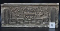 Zeer mooi oud element van Chinese dakbedekking in perfecte staat. Het heeft twee versierde gezichten op elk waarvan het teken van een lang leven is omringd door twee drakenkoppen.