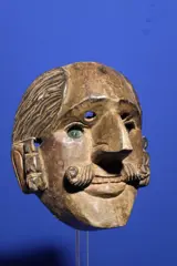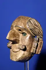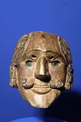 Oud dansmasker uit Guatemala, moet gezien zijn grote snor en grote neus waarschijnlijk een Spanjaard voorstellen.