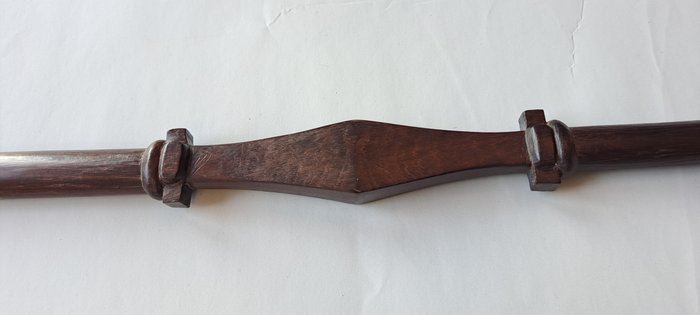 Materiaal: Gemaakt van dicht hardhout, diepbruine kleur, patina van gebruik en leeftijd.