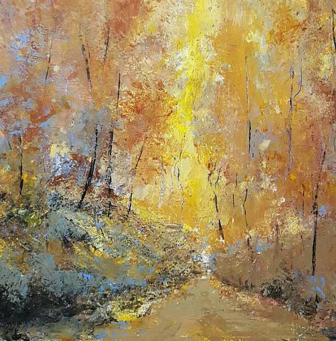 Galerijkwaliteit voor dit semi-abstracte canvas vol kleuren van contrast en zachtheid Kunstenaar vermeld Hakoun aanwezig wereldwijde onmiddellijke verzending door Colissimo