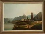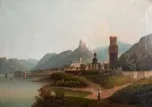 Getoond wordt de kasteelruïne van Schönburg bij Oberwesel aan de Rijn.