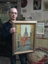 Kramu Iela. Riga - olieverf op doek, linksonder gesigneerd en verso getiteld in het Russisch.