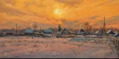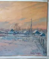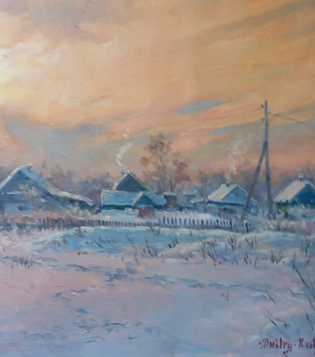 Winterlandschap - olieverf op doek, gesigneerd linksonder en verso getiteld in het Russisch.