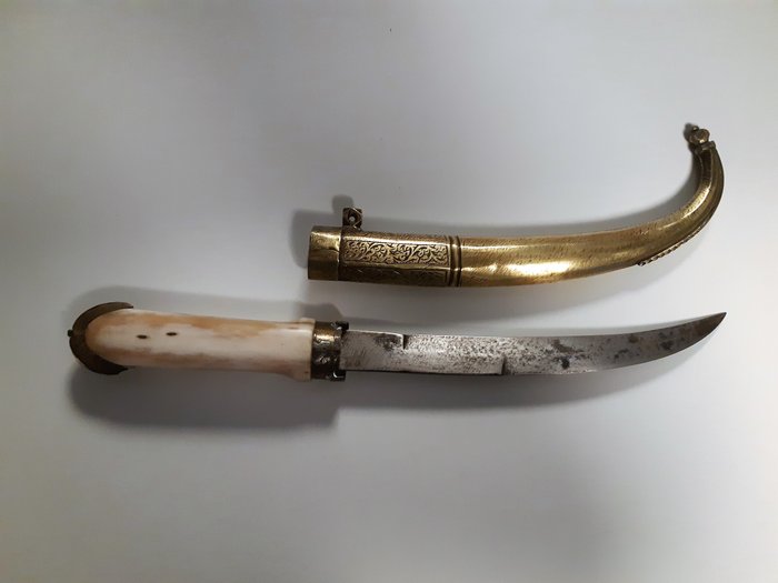 Zeer grote en zeer fraaie 19e eeuwse vergulde gebogen Arabische dolk (kortzwaard).