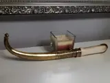 Het lemmet van de dolk is gemaakt van staal. Het handvat van de dolk is gemaakt van natuurlijk been en de schede is gemaakt van messing en verguld met goud.