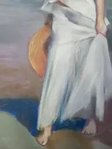 Taart van Domingo Álvarez Gómez. Meisje op het strand. Gesigneerd werk, 2012. 41x31 cm. Herkomst van de auteur. Werk beschermd met vinyl.