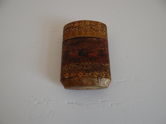 Kist, koffer in 19e-eeuws inlegwerk van stro?