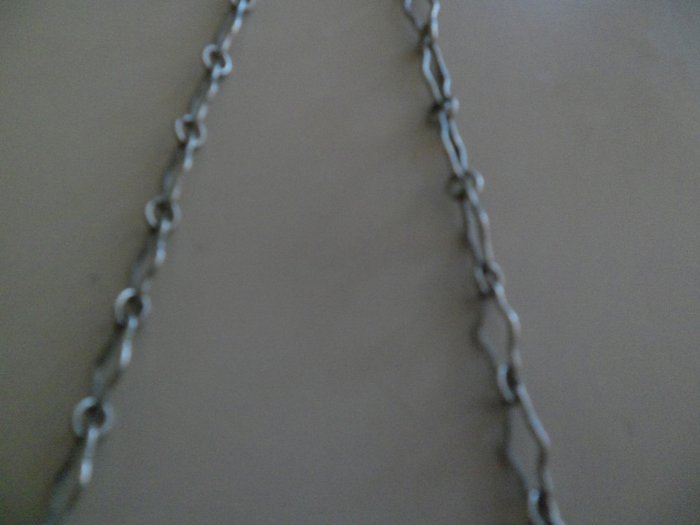 Three is een grote zilveren ketting om hem op te hangen. Mooi collectors item,