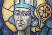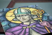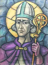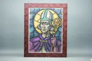 Een delicate Nederlandse school uit de 20e eeuw met een afbeelding van een heilige en zijn staf. Waterverf en potlood op papier met verso opschriften. Houd er rekening mee dat dit kunstwerk zonder lijst wordt verkocht, de lijst wordt alleen gebruikt voor de foto's om het werk in al zijn glorie weer te geven. Dit werk op papier is in redelijke staat met ouderdomssporen en gebruikssporen zichtbaar. De foto's maken deel uit van de beschrijving.