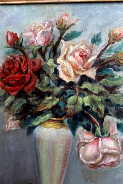 Ecole catalane (XX) - Vase avec roses