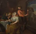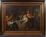 Het schilderij is rijkelijk geanimeerd met figuren.