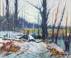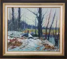 Oud groot formaat olieverfschilderij op canvas, handgesigneerd.