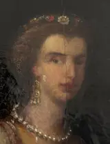 Dit werk stelt een danseres en haar trommel voor. Het is gemaakt in olieverf op massief eiken paneel. De grote kwaliteit van dit werk ligt in het gebruik van een techniek die nauwkeurig is in de details en vaag in het algemeen. We verliezen ons in de vragende blik van de danser. Veel levendigheid en mysterie in dit schilderij.