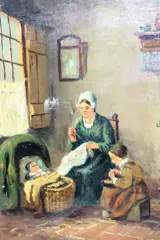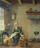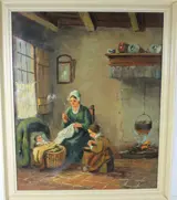 19e Eeuws Interieur met Vrouw en Kinderen.