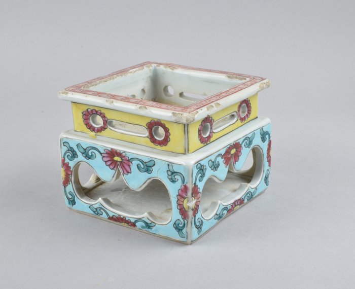 EEN CHINESE FAMILIE ROSE STANDAARD VOOR VIERKANTE VAAS - Porselein - China - Yongzheng (1723-1735)
