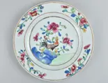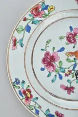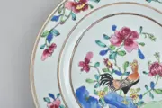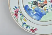Een fijn Chinees famille rose bord gedecoreerd met een haan