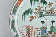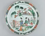 Een Chinese famille verte schotel gedecoreerd met figuren