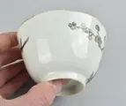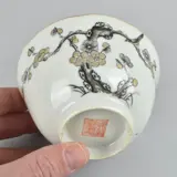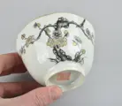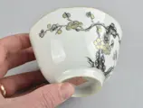 Een zeer fraaie en grote Chinese grisaille kom gedecoreerd met prunus en vogels