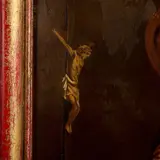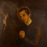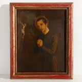 C. de Melotte - "St. Franciscus in gebed" (1900). Olie op koper. Gesigneerd en gedateerd. Rode polychroom houten lijst. Lijst: 38x30 cm. Lijst: 47x39 cm. In goede staat.
