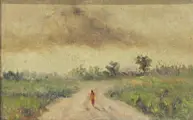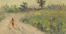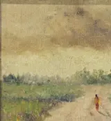 De grandioze en uitgebalanceerde compositie van dit spectaculaire landschap met figuur. Rijk aan nuances en kleurrijke details.