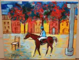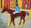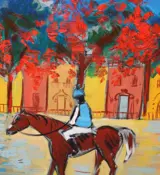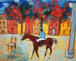 Escuela española (XX) - Vista urbana con jinete