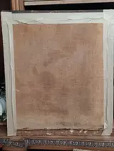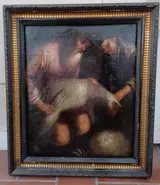 Hollandse School 17e-18e eeuw. Het ambacht van Scheerder. Olieverf op canvas. Het werk wordt overgedaan. Afmetingen: 46x54cm.