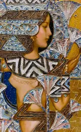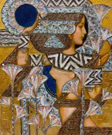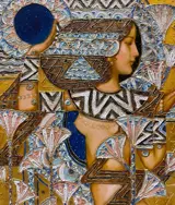 - Oriental Night - olieverf, gemengde techniek in reliëf en bladgoud op doek. Enkel werk.