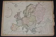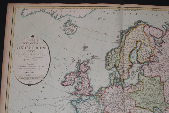 Algemene kaart van Europa waarop we het vertrek en de terugkeer van kapitein Cook zien tijdens zijn verschillende reizen, opgesteld door Hérisson, leerling van C. BONNE, voormalig ingenieur-hydrograaf van de marine. Parijs, in Desnos, tussen 1780 en 1800.