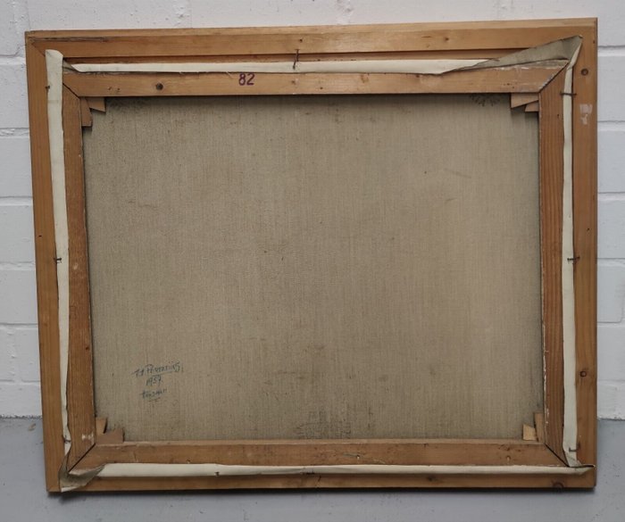 Afmeting: ca. 78x92,5 cm buitenmaat lijst, ca. 82,5x67 cm doekmaat