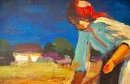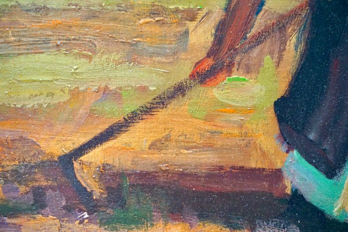 Europese school (XIX - XX) - "Op het veld", olieverf op karton. Gesigneerd (Koszta) in bruin rechtsonder.
