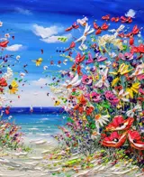 Evelina Vine is een Britse kunstenaar gevestigd in het zuiden van Engeland. Ze staat bekend om haar bloemen- en abstracte kunst. Wonend aan zee schildert ze sfeervolle luchten en heldere taferelen, geïnspireerd door haar omgeving, die dicht bij de kust en de natuur ligt. Ze werkt voornamelijk in olieverf en verf met een paletmes om diepte en textuur toe te voegen.