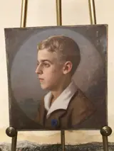 Jeugdportret 1910 door Michael von Voor- en achterzijde