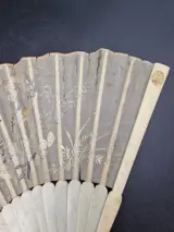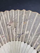 Deze opvouwbare waaier is geborduurd met drakenpatronen die spelen met parels op zijde, en de wolken en mist stijgen op, wat realistisch is. Licht beschadigd door ouderdom. Oordeel zelf. Het is de moeite waard om te verzamelen!
